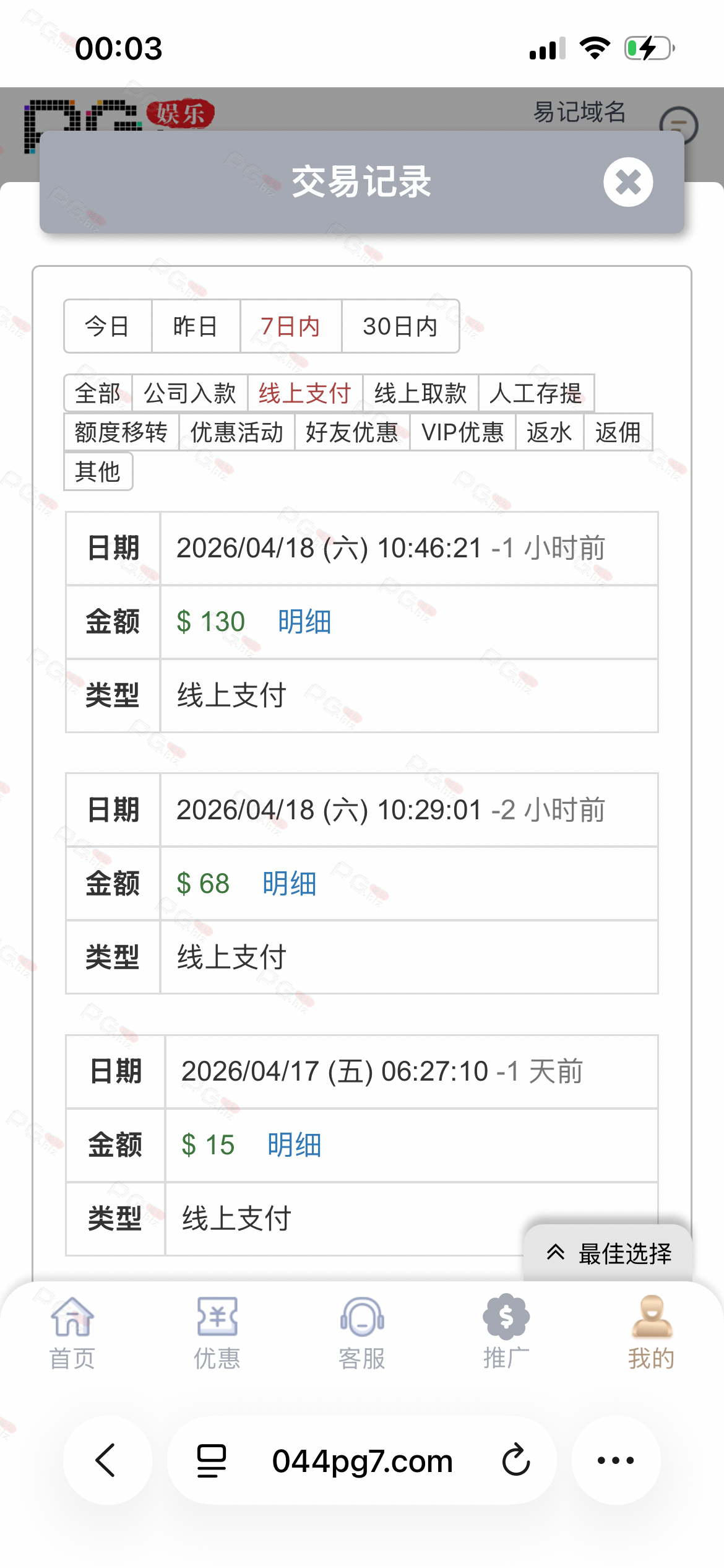 终于吃到一次了 一共冲了三手100 开始pp杀完了 又冲一百拉pg也没了 最后剩一百块钱想着反正就剩这一百直接输完的了 没想到给了