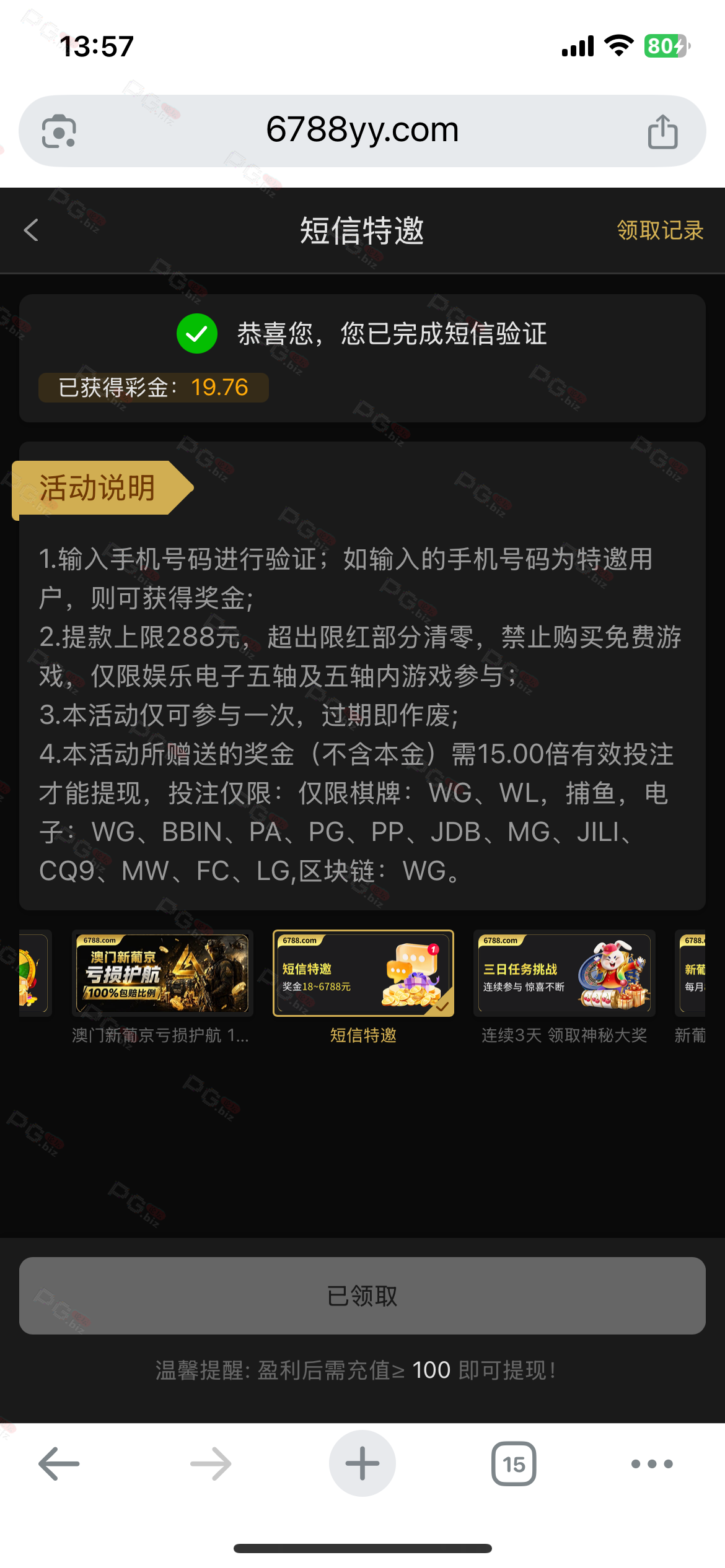 撸成功的老哥,请跟客服说您是从PG论坛 【PG.Biz】过来的。
